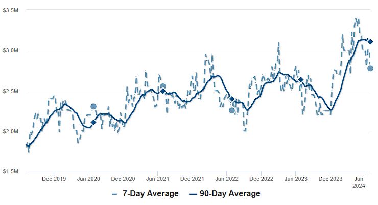 - Median Price of New Listings: $2,495,000